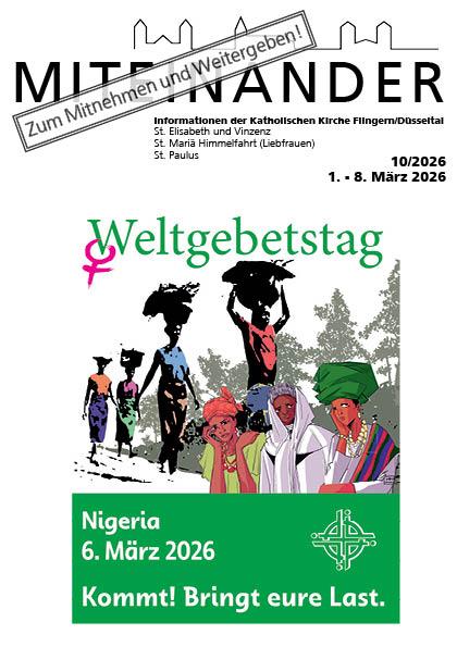 Unser Pfarrbrief erscheint in der Regel wöchentlich und liegt in unseren Kirchen und Einrichtungen aus.